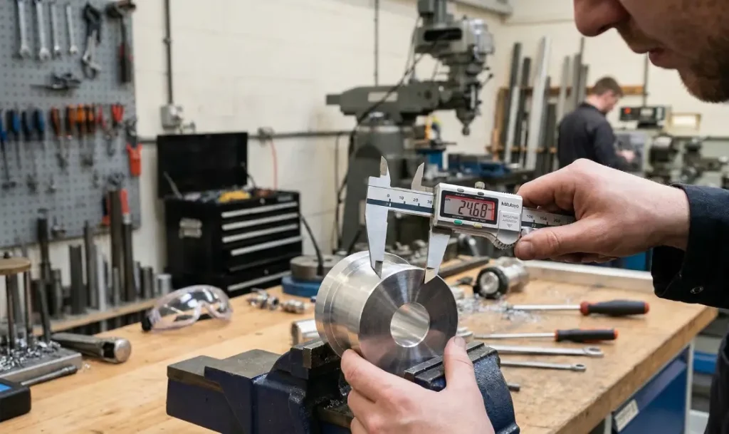 Pentru a elimina nealinierea: abordează întotdeauna măsurătorile la un unghi drept față de suprafața piesei de lucru. Pentru obiectele rotunde, rotește ușor șublerul până când găsești cea mai mică citire – acela este diametrul tău. Verifică dacă ambele fețe ale fălcilor contactează piesa simultan înainte de a înregistra orice valoare. La măsurarea adâncimii sau a treptelor, asigură-te că rigla principală stă plan pe suprafața de referință. Aceste verificări simple de aliniere transformă măsurătorile nefiabile în date de încredere.